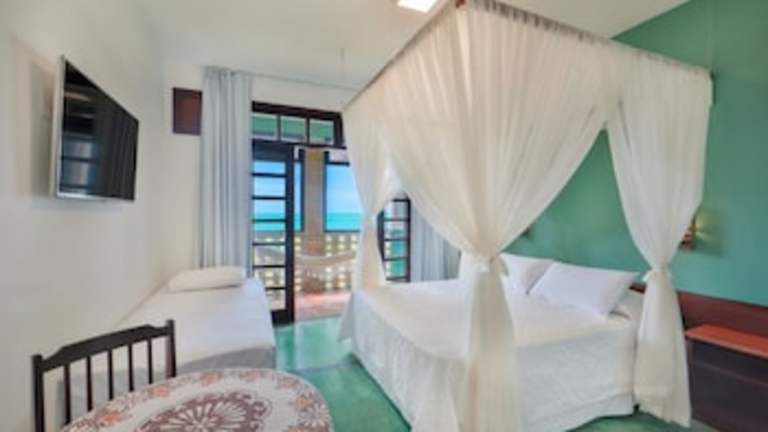 Die Zimmer der Pousada Ecoporto sind farbenfroh gestaltet und bieten einen eigenen Balkon mit Hängematten, auf denen Sie den Meerblick genießen können. Die Zimmer sind klimatisiert und verfügen über Annehmlichkeiten wie einen Flachbild-Smart-TV, eine Minibar und einen Safe. Das eigene Bad ist mit einem Haartrockner ausgestattet und bietet Ihnen somit allen Komfort, den Sie benötigen.