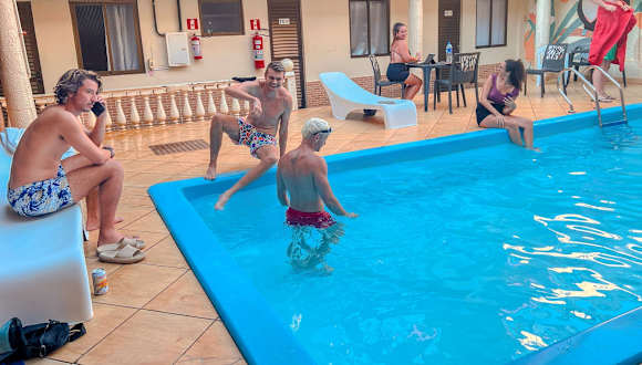 Das Pousada El Shaddai ist eine ideale Unterkunft für Ihren Aufenthalt in Foz do Iguaçu. Die zentrale Lage ermöglicht es Ihnen, die Sehenswürdigkeiten der Stadt, insbesondere die Iguassu-Wasserfälle, bequem zu erreichen. Das Hotel bietet komfortable Zimmer mit kostenfreiem WLAN sowie freundliches und hilfsbereites Personal, das Ihnen bei der Planung Ihrer Aktivitäten und Restaurantempfehlungen zur Seite steht. Der Außenpool und der Grillplatz laden zum Entspannen ein, und die kostenfreien Privatparkplätze bieten zusätzlichen Komfort.