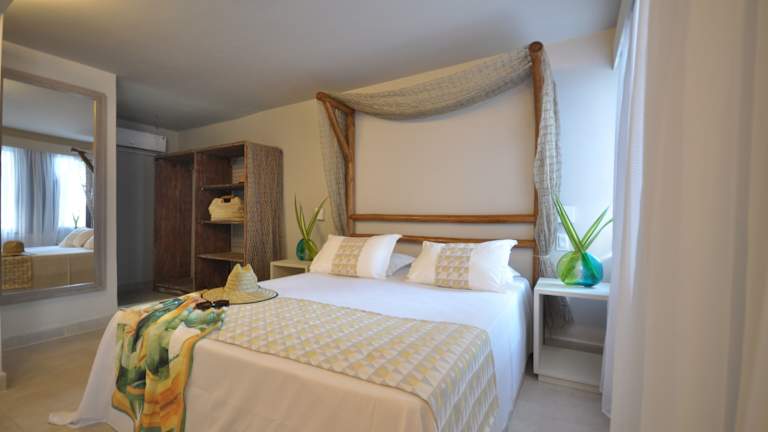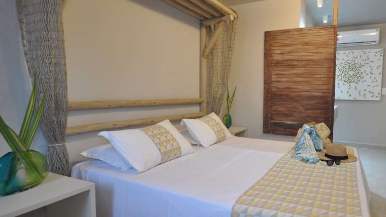 Die hellen und geräumigen Zimmer der Pousada Tabajuba verfügen über eine Klimaanlage, eine Dusche, einen TV und eine Minibar. Einige Zimmer bieten auch eine private Terrasse mit einer Hängematte, auf der Sie sich entspannen und die Meeresbrise genießen können.