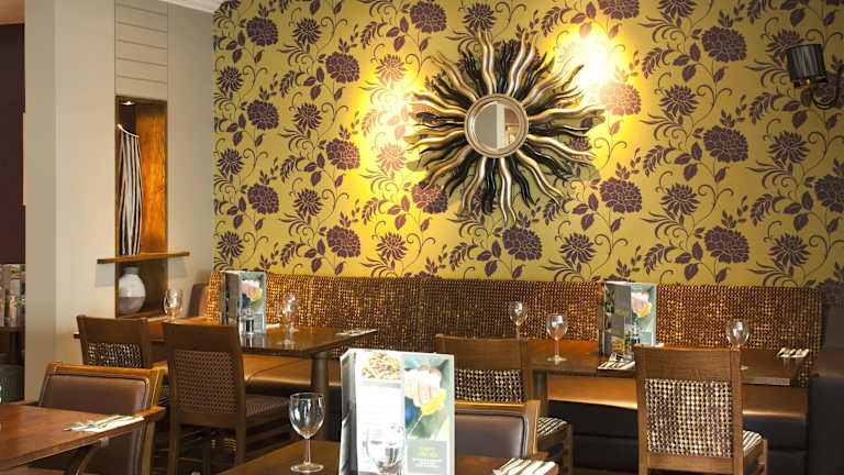 Im Hotel gibt es ein Restaurant und eine Bar, in denen die Gäste speisen und entspannen können.