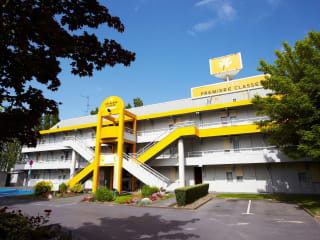Das Premiere Classe Versailles - Saint Cyr L'ecole ist eine erschwingliche Unterkunft in günstiger Lage, nur wenige Kilometer vom berühmten Schloss Versailles entfernt. Die klimatisierten Zimmer bieten kostenfreies WLAN und ein eigenes Bad. Kostenlose Parkplätze stehen zur Verfügung und ein Frühstücksbuffet wird jeden Morgen serviert. Die Nähe zum RER-Bahnhof Saint-Cyr ermöglicht eine bequeme Anbindung an die Pariser Innenstadt.