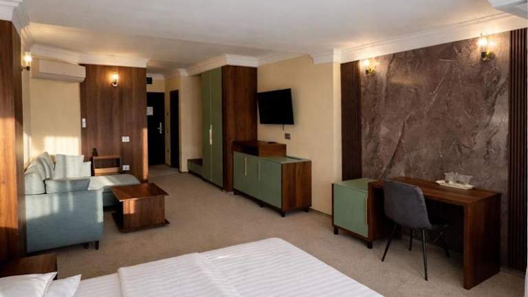 Das Hotel President in Arad bietet seinen Gästen einen angenehmen Aufenthalt mit einem Freizeitbereich und einer großzügigen Sommerterrasse mit Pool. Kostenloses WLAN und private Parkplätze sind ebenfalls vorhanden. Das Hotel liegt etwa 30 Gehminuten vom Zentrum von Arad entfernt und bietet somit eine ruhige Lage. Die klimatisierten und schallisolierten Zimmer verfügen über einen Balkon und eine Minibar. Im hoteleigenen Restaurant können Sie traditionelle rumänische und internationale Gerichte genießen. Ein Frühstücksbuffet wird täglich serviert. Das Stadtzentrum von Arad ist 2 km entfernt und die Zitadelle von Arad erreichen Sie vom Hotel President aus nach 3,5 km.
