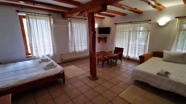 Das Hotel Pri Chakara liegt im historischen Dorf Arbanassi, das für seine charmante Atmosphäre und seine gut erhaltenen Gebäude bekannt ist. Die ruhige Lage des Hotels ermöglicht es den Gästen, die natürliche Schönheit der Umgebung zu genießen. In der Nähe gibt es einen Tennisplatz, auf dem sportbegeisterte Gäste aktiv werden können. Die Stadt Veliko Tarnovo und das Kloster Preobrajenski sind nur eine kurze Fahrt entfernt und bieten weitere Sehenswürdigkeiten und Ausflugsmöglichkeiten.