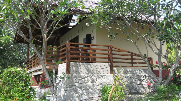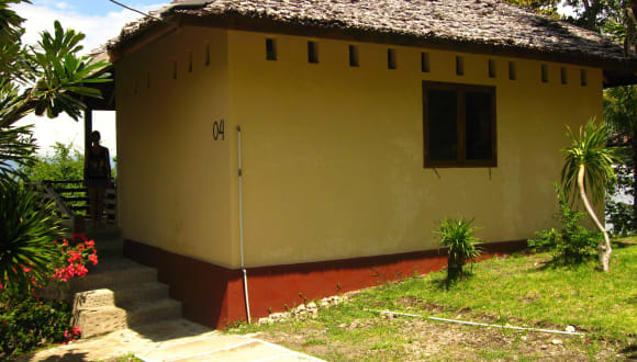 15 Bungalows in drei verschiedenen Kategorien (Deluxe, Comfort, Relax) ausgestattet mit privaten Terrassen mit Meerblick, liegen direkt über dem weißen Sandstrand in dem ruhigen, tropischen Garten. Die sechs luxuriöseren Steinbungalows (Deluxe und Comfort), ausgestattet mit Arbeitstischen für Fotografen und großzügigen Badezimmern und die neun tradititonellen Holzbungalows (Relax) verfügen alle über: Moskitonetz Privates europäisches Bad mit fließend Wasser Ventilator Hängematte und Sitzgelegenheit auf der Terrasse Extrabett möglich Informationsmappe 220 V Steckdosen, kein Adapter notwendig