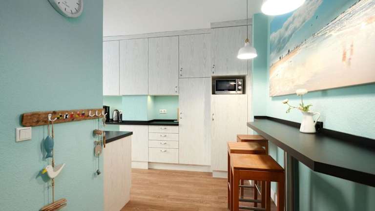 Die Apartments im Promenadendeck sind geräumig und bieten Platz für bis zu 6 Personen. Jedes Apartment verfügt über einen Balkon mit Blick auf die Ostsee, wo Sie die Sonne und den Meerblick genießen können. Die voll ausgestattete Küche bietet alles, was Sie benötigen, um Ihre eigenen Mahlzeiten zu kochen. Ein TV und kostenfreies WLAN sind ebenfalls vorhanden.