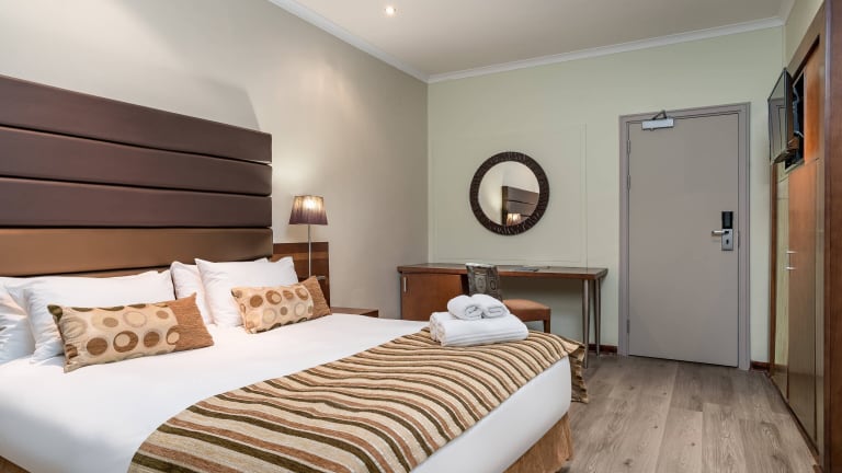 Die klimatisierten Zimmer im Protea Hotel Upington sind modern und komfortabel eingerichtet. Jedes Zimmer verfügt über Annehmlichkeiten wie einen Flachbild-Sat-TV, Kaffee- und Teezubereitungsmöglichkeiten und eine Minibar. Das eigene Badezimmer ist mit einer Badewanne ausgestattet.