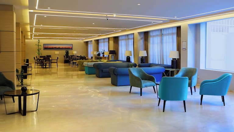 Im Hotel gibt es ein Café und eine Bar, in denen Sie Snacks und Getränke genießen können. Das Frühstück wird als abwechslungsreiches Buffet angeboten und das Abendessen kann à la carte ausgewählt werden. Für zusätzlichen Komfort steht Ihnen auch der Zimmerservice zur Verfügung.