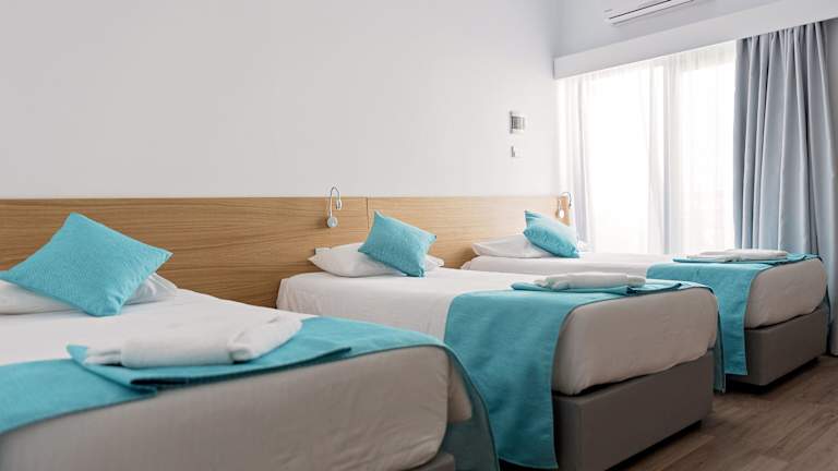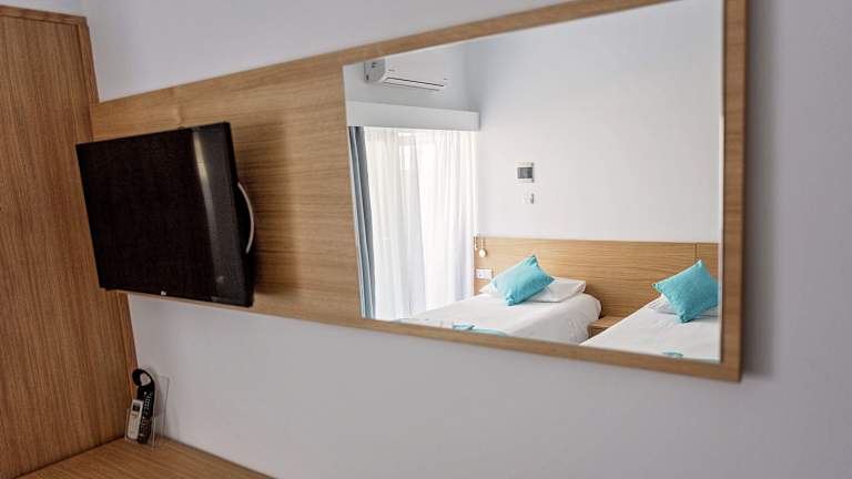 Das Pyramos Hotel verfügt über 20 komfortable Zimmer, die alle klimatisiert sind und mit einem LCD-Sat-TV ausgestattet sind. Jedes Zimmer bietet zudem einen eigenen Balkon und ein eigenes Bad. Auf Anfrage können Sie einen kleinen Kühlschrank erhalten. Kostenloses WLAN steht Ihnen in allen Bereichen des Hotels zur Verfügung.