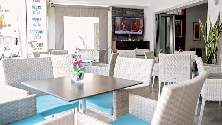 Im Restaurant Pyramos erwartet Sie ein leckeres Frühstück, das im Preis enthalten ist. Das Hotel bietet auch einen Zimmerservice für Ihren Komfort. An der Hotelbar können Sie Cocktails, Weine und Snacks genießen. Die Bar verfügt über Billardtische und Sat-TV, so dass Sie sich bei Sportveranstaltungen entspannen können.