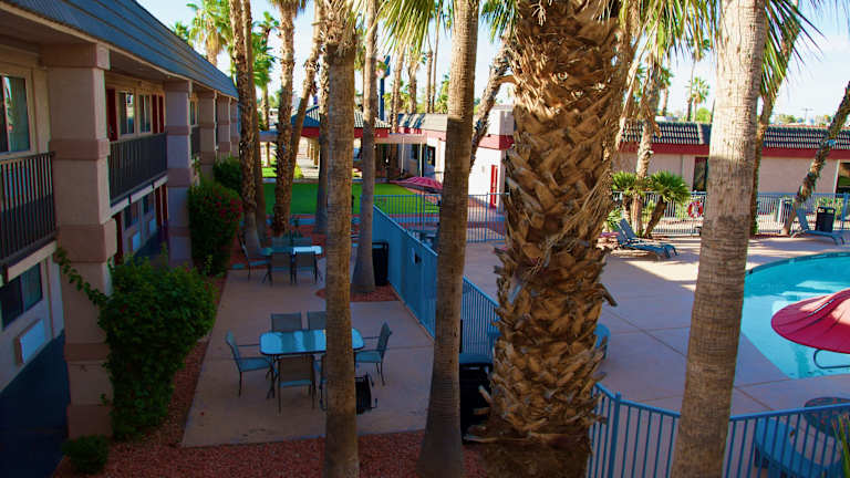 Das Ramada by Wyndham Yuma ist ein komfortables Hotel in günstiger Lage neben dem Flughafen Yuma. Es bietet einen kostenlosen Transfer zum Terminal und kostenfreies WLAN im gesamten Hotel. Die Zimmer sind modern eingerichtet und verfügen über Annehmlichkeiten wie einen Flachbild-Kabel-TV und eine Kaffeemaschine. Entspannen Sie sich am beheizten Außenpool oder genießen Sie das kontinentale Frühstück am Morgen. Das Hotel liegt in der Nähe des Yuma Municipal Golf Course und des Cocopah Casinos, was es zu einem idealen Ausgangspunkt für Aktivitäten in der Umgebung macht.