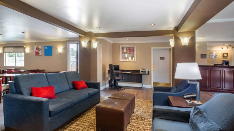 Das Comfort Inn Castro Valley Hotel liegt in Castro Valley und ist nur eine kurze Fahrt vom internationalen Flughafen Oakland entfernt. Die Umgebung bietet eine Vielzahl von Attraktionen, darunter die Oracle Arena, das Oakland-Alameda County Coliseum, die California State University East Bay und der Oakland Zoo. Die charmante Küstenstadt San Leandro ist ebenfalls in der Nähe und bietet eine Vielzahl von Freizeitaktivitäten. Die Innenstadt von San Francisco und ihre berühmten Sehenswürdigkeiten wie die Golden Gate Bridge und der Fisherman's Wharf sind ebenfalls leicht zu erreichen.