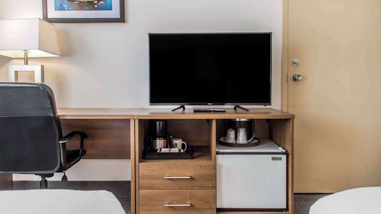 Die Zimmer im Quality Hotel Dorval sind komfortabel und bieten alle Annehmlichkeiten, die Sie für einen angenehmen Aufenthalt benötigen. Jedes Zimmer verfügt über einen Kühlschrank, einen Flachbild-Kabel-TV, einen Schreibtisch und eine Kaffeemaschine. Eine Mikrowelle ist ebenfalls vorhanden, um Ihnen zusätzlichen Komfort zu bieten. Die Zimmer sind geschmackvoll eingerichtet und bieten einen gemütlichen Rückzugsort nach einem langen Tag.