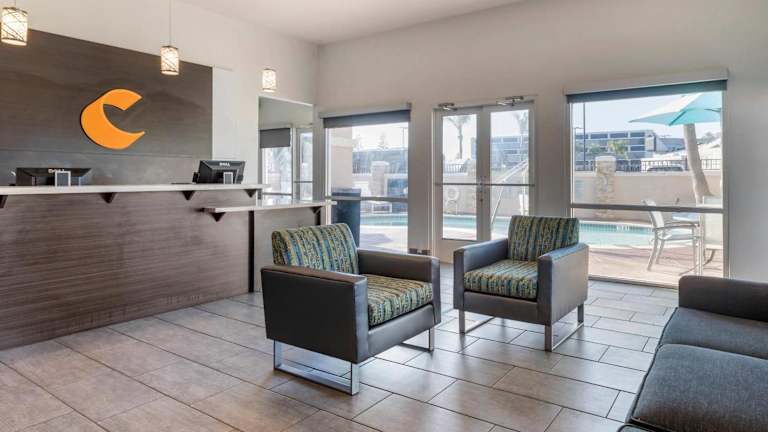 Das Comfort Inn San Diego Miramar ist eine ideale Wahl für Reisende, die eine komfortable Unterkunft in der Nähe des Marine Corps Air Station Miramar suchen. Mit kostenfreiem WLAN, einem kostenlosen warmen Frühstück und einem Außenpool bietet das Hotel alles, was Sie für einen angenehmen Aufenthalt benötigen. Die Zimmer sind gut ausgestattet und verfügen über moderne Annehmlichkeiten wie Flachbild-Kabel-TV, Kühlschrank, Mikrowelle und Kaffeezubehör. Das Hotel bietet auch ein Fitnesscenter, kostenlose Tageszeitungen und kostenlosen Kaffee in der Lobby. Parkplätze stehen zur Verfügung und beliebte Sehenswürdigkeiten wie SeaWorld San Diego und der Balboa Park sind in der Nähe.