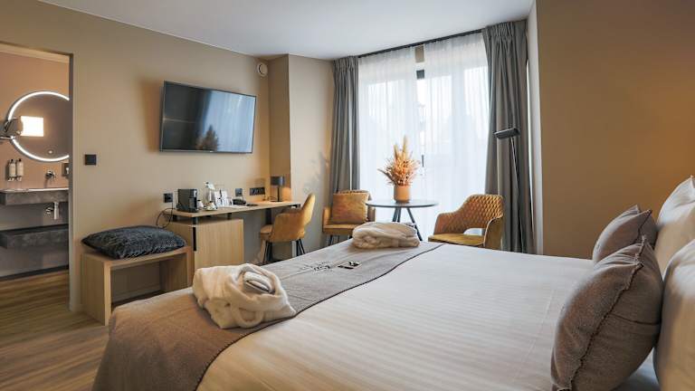 Das Hotel Quartier Latin liegt zentral in der ruhigen Stadt Marche-en-Famenne. In der Nähe finden Sie Restaurants und Geschäfte. Die Altstadt von Rochefort ist weniger als 20 Autominuten entfernt und der Golfclub Five Nations erreichen Sie in 15 Minuten. Die Umgebung bietet viele Möglichkeiten für Aktivitäten wie Wandern und Radfahren.