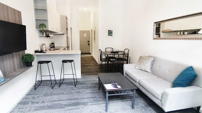 Die Unterkunft umfasst großzügige und vollständig ausgestattete Studios sowie 1- und 2-Zimmer-Apartments. Alle Einheiten sind mit einer voll ausgestatteten Küche, Mikrowelle, Geschirrspüler, Waschmaschine, Trockner, Kabel-TV, Stereo/CD-Player, Haartrockner sowie Direktwahltelefon ausgestattet. WLAN-Internetzugang ist gegen eine geringe Gebühr verfügbar. Zudem können DVD-Player und Filme an der Rezeption ausgeliehen werden.