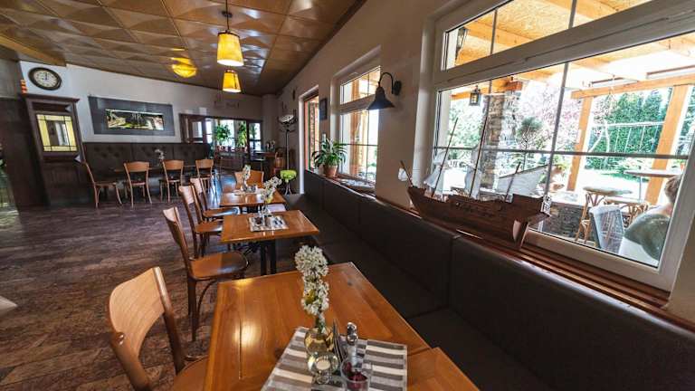 Im Restaurant des Hotels Racek können die Gäste typische tschechische Spezialitäten auf der überdachten Terrasse genießen. Es gibt auch Grillmöglichkeiten für diejenigen, die gerne im Freien speisen möchten.