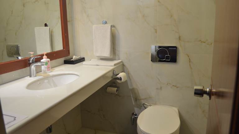 Die Zimmer im Radha Ashok Hotel sind geräumig und klimatisiert. Sie bieten einen bequemen Sitzbereich mit Sofas und sind mit einem Flachbild-TV und einem DVD-Player ausgestattet. Die Zimmer verfügen über Holzböden und sind beheizt. Im Badezimmer finden Sie einen Haartrockner und zur Ausstattung gehören auch Tee- und Kaffeezubehör sowie ein Safe.