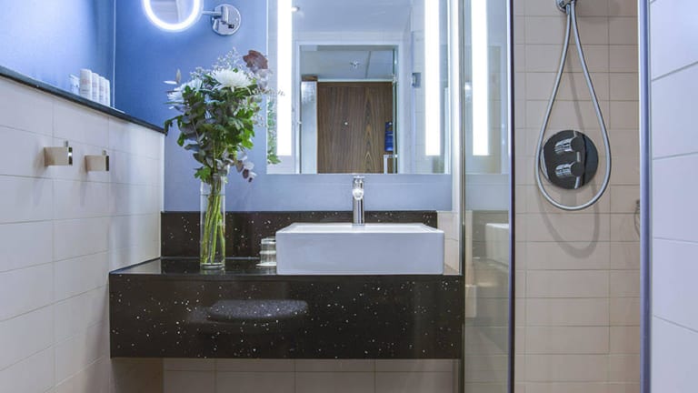 Die Zimmer sind klimatisiert und verfügen über eine individuell regulierbare Heizung. Zur Ausstattung gehören Teppichböden, ein Doppelbett oder Kingsize-Bett, ein Safe, eine Minibar, ein Kühlschrank, eine Tee-/Kaffeemaschine und ein Bügelset. Jedes Zimmer bietet zudem ein Telefon mit Direktwahl, einen Fernseher mit Satelliten-/Kabelempfang sowie WLAN. Die Badezimmer sind mit einer Dusche oder Badewanne ausgestattet und bieten einen Haartrockner. Es sind auch rollstuhlgerechte Zimmer mit barrierefreien Bädern vorhanden.