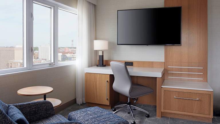 Das Marriott Saskatoon Downtown bietet eine erstklassige Lage im Stadtzentrum von Saskatoon und ist nur wenige Gehminuten vom TCU Place entfernt. Mit einem Innenpool, einer Wasserrutsche und kostenfreiem WLAN bietet das Hotel eine komfortable und unterhaltsame Unterkunft für Gäste jeden Alters. Die modernen Zimmer sind mit einem Flachbild-Smart-TV, einem Schreibtisch und einer Kaffeemaschine ausgestattet. Zu den Annehmlichkeiten des Hotels gehören auch ein Whirlpool, eine Sauna und ein Fitnesscenter. Kostenlose bewachte Parkplätze stehen zur Verfügung und das freundliche Personal steht rund um die Uhr zur Verfügung.