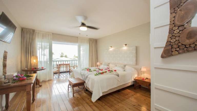 Die 16 klimatisierten Zimmer im Hôtel Raiatea Lodge bieten jeweils eine große Terrasse mit Blick auf die Lagune. Zur Ausstattung gehören ein Flachbild-TV, ein eigener Safe und ein Bad mit Haartrockner. WLAN nutzen Sie kostenlos.