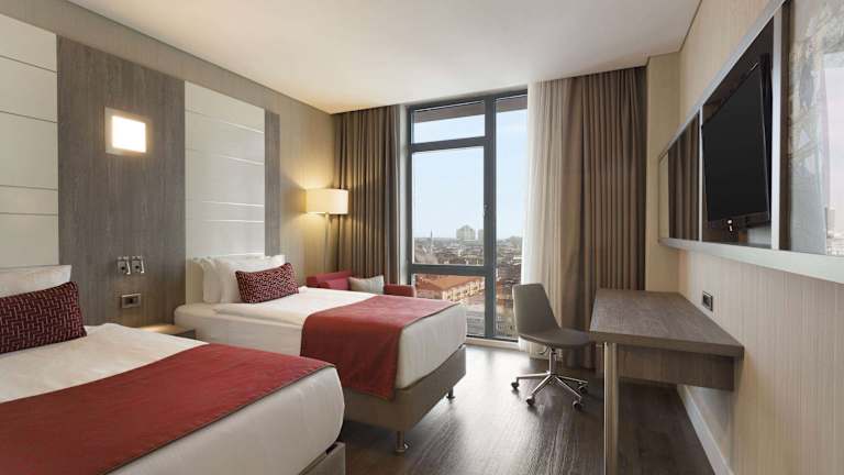 Das Ramada Encore Istanbul Bayrampasa befindet sich im Stadtteil Bayrampasa, nur eine kurze Fahrt vom Flughafen Atatürk entfernt. Die Lage des Hotels ermöglicht es den Gästen, die historische Altstadt Sultanahmet und den lebhaften Taksim-Platz in kurzer Zeit zu erreichen. Die Metrostation ist ebenfalls in der Nähe, sodass die Gäste bequem die verschiedenen Viertel und Attraktionen der Stadt erkunden können.