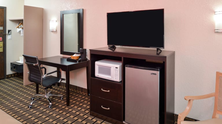 Das Ramada by Wyndham Grand Junction ist ein komfortables Hotel in günstiger Lage, das seinen Gästen eine Vielzahl von Annehmlichkeiten bietet. Genießen Sie den kostenlosen Transferservice zum Regionalflughafen Grand Junction und das kostenfreie WLAN. Das Hotel verfügt über klimatisierte Zimmer mit Flachbild-Kabel-TV und bietet ein kostenloses warmes Frühstück. Entspannen Sie im Innenhof oder nutzen Sie den Waschsalon. Das Ramada Grand Junction bietet Ihnen alles, was Sie für einen angenehmen Aufenthalt benötigen.