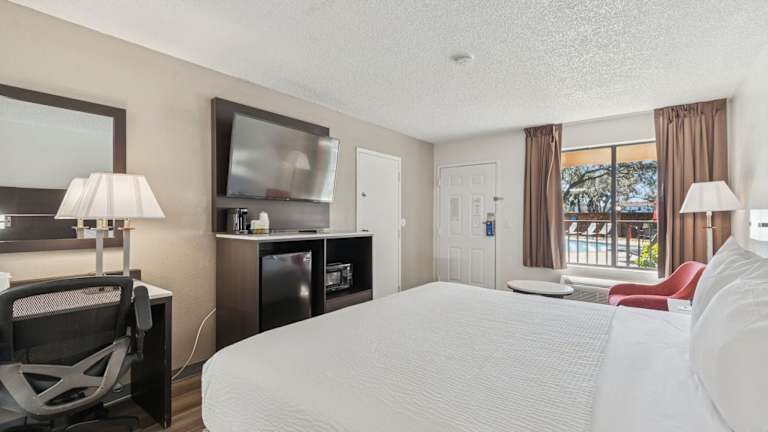 Das Ramada by Wyndham Temple Terrace/Tampa North ist ein komfortables Hotel, das nur 10 Fahrminuten vom Themenpark Busch Gardens entfernt liegt. Es bietet einen Außenpool und Zimmer mit kostenfreiem WLAN und Kabel-TV. Jeden Morgen wird ein kostenloses kontinentales Frühstück serviert und neben dem Hotel gibt es ein Restaurant der bekannten Restaurantkette IHOP. Die University of South Florida ist in nur 8 Autominuten erreichbar. Das Hotel bietet außerdem kostenlosen Zugang zum Fitnessraum und eine sonnige Terrasse am Pool zum Entspannen.