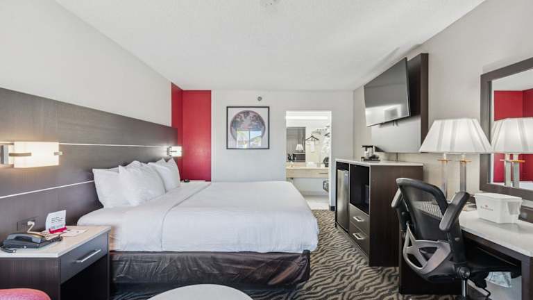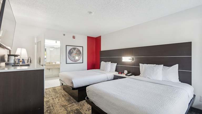 Das Hotel verfügt über 122 Zimmer, die über moderne Annehmlichkeiten wie einen Flachbild-TV mit DirecTV, eine Mikrowelle, einen Kühlschrank und einen Schreibtisch verfügen. Kaffeezubehör steht ebenfalls zur Verfügung. Ausgewählte Zimmer bieten einen zusätzlichen Sitzbereich mit einem Schlafsofa. Alle Zimmer sind Nichtraucherzimmer.