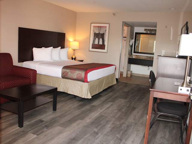 Die modernen Zimmer im Ramada by Wyndham Tempe/At Arizona Mills Mall sind stilvoll eingerichtet und bieten kostenloses WLAN, einen Flachbild-Kabel-TV und kostenfreie Pflegeprodukte im eigenen Badezimmer. Die Zimmer sind in weißer Bettwäsche und dunklen Holzmöbeln gestaltet und bieten einen komfortablen Rückzugsort für die Gäste.
