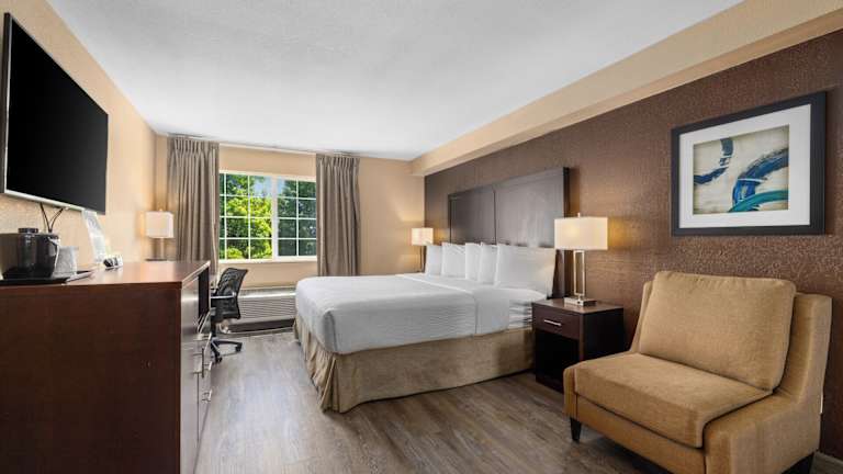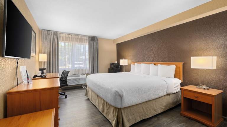 Die Zimmer im Ramada by Wyndham Portland sind komfortabel und bieten Annehmlichkeiten wie Flachbildfernseher, Arbeitsbereiche mit Stühlen und Tee-/Kaffeekocher. Jedes Zimmer verfügt auch über ein eigenes Badezimmer mit Haartrockner. Die Gäste können den kostenfreien WLAN-Zugang in Anspruch nehmen und erhalten 24 Stunden am Tag kostenlosen Kaffee in der Empfangshalle.