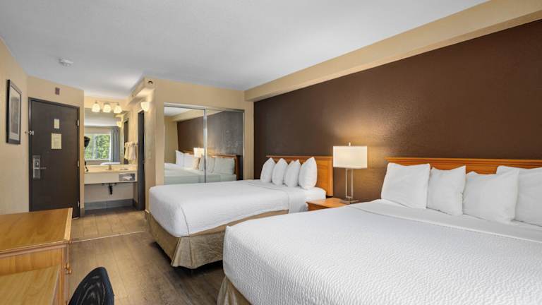 Das Ramada by Wyndham Portland liegt verkehrsgünstig in der Nähe der I-205 und des Portland International Airport. Die Lage ermöglicht eine einfache Anbindung an die Stadt und bietet eine gute Ausgangsbasis für Erkundungstouren. Die MAX-Light-Rail-Station ist nur wenige Gehminuten entfernt, was die Erkundung der Umgebung noch bequemer macht. In der Nähe des Hotels finden Sie auch das Rose Garden Arena, Heimat des Portland Trail Blazers Basketballteams, sowie den Portland International Rose Test Garden.