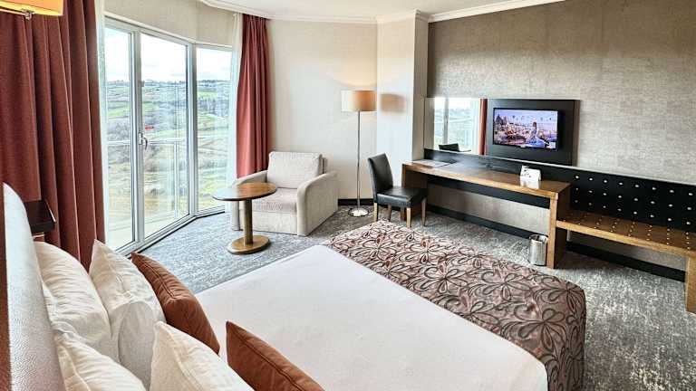 Die 129 Zimmer des Hotels sind auf 9 Etagen verteilt und über einen Aufzug erreichbar. Die Zimmer sind schallisoliert und verfügen über modernen Komfort, einschließlich Flachbild-TV, Klimaanlage, elektrischem Wasserkocher und kostenlosem WLAN. Jedes Zimmer bietet zudem einen Balkon und ein eigenes Badezimmer mit Regendusche oder eigenem Whirlpool.