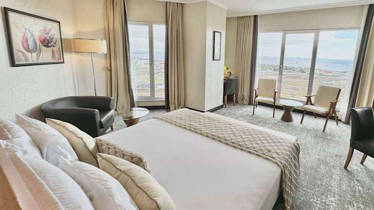 Das Hotel bietet ein Frühstücksbuffet mit frisch gepresstem Orangensaft im Hauptrestaurant. Genießen Sie den Panoramablick auf die Stadt und das Marmarameer von den deckenhohen Fenstern des Speisesaals aus. Die Bar lädt mit einer Auswahl an alkoholischen und alkoholfreien Getränken zum Verweilen ein.