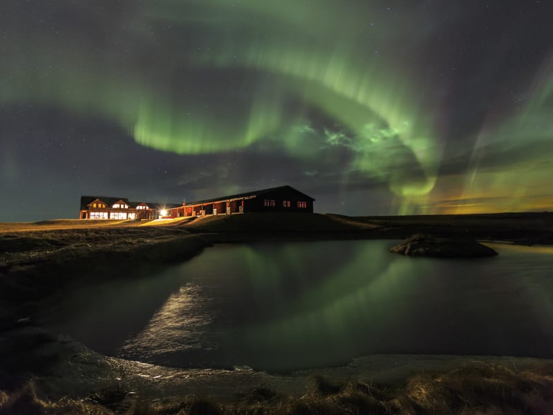 Das Hotel Rangá liegt abgeschieden am Rangá-Fluss in Hella und bietet eine ruhige und malerische Umgebung. Der bekannte Vulkan Mounkt Hekla ist in der Nähe und bietet eine beeindruckende Kulisse. Das Stadtzentrum von Hella ist ca. 8 km entfernt und Reykjavik erreichen Sie nach ca. 96 km. Der internationale Flughafen Keflavik ist etwa 140 km entfernt.