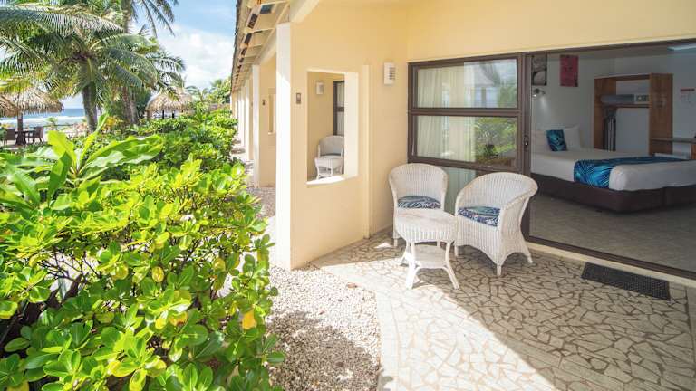 Das Club Raro Resort in Rarotonga ist ein idyllisches Strandresort, das von wunderschönen Pfaden, Palmen und tropischen Gärten umgeben ist. Hier können Sie sich am Pool entspannen oder an der Swim-up-Bar köstliche Cocktails genießen. Das Resort bietet eine ideale Lage, nur wenige Kilometer vom Flughafen und dem Stadtzentrum von Avarua entfernt. Das Restaurant Jalapeños verwöhnt Sie mit einer Vielzahl von internationalen und regionalen Gerichten. Die klimatisierten Zimmer sind komfortabel und verfügen über Annehmlichkeiten wie Deckenventilatoren, Moana-TV und Tee- und Kaffeezubereitungsmöglichkeiten.