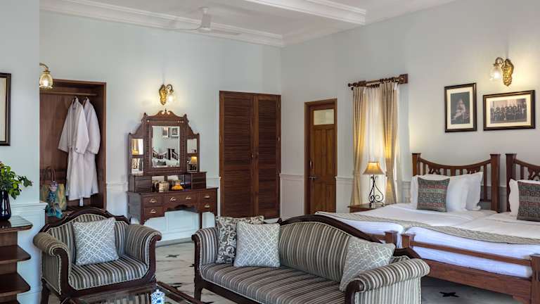 Die Zimmer im Ratan Vilas Hotel sind modern, elegant und klimatisiert. Sie bieten Annehmlichkeiten wie Sat-TV, einen Sitzbereich und eine Minibar. Das eigene Bad ist mit einer Dusche, einem Haartrockner und kostenfreien Pflegeprodukten ausgestattet. Der Zimmerservice steht Ihnen rund um die Uhr zur Verfügung.