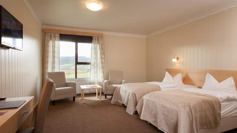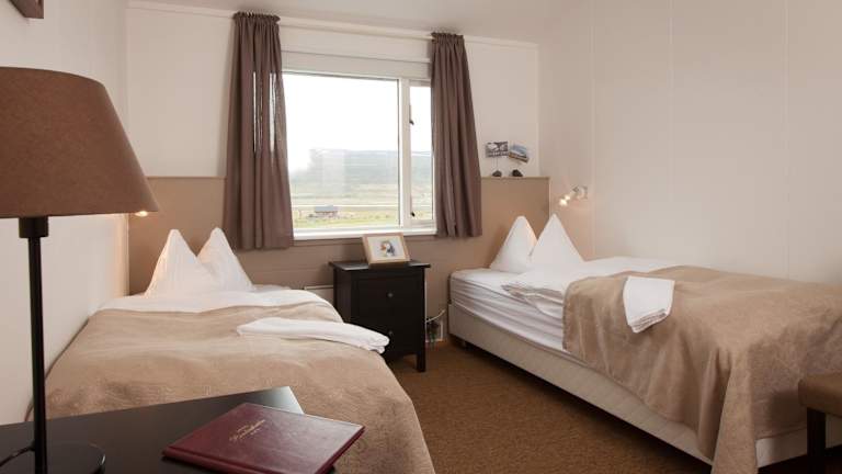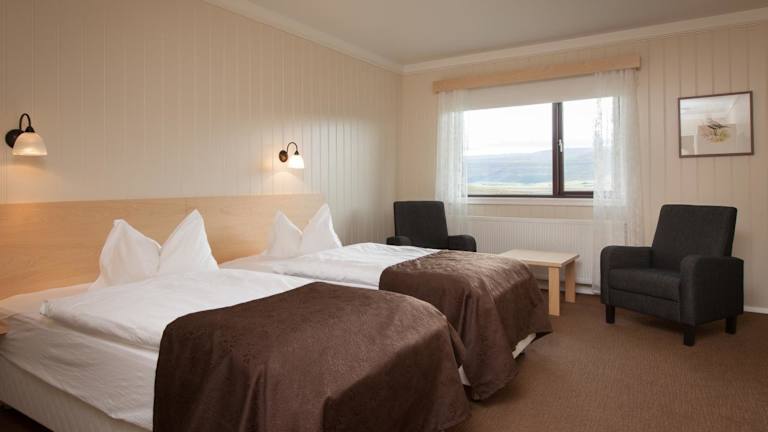 Die Zimmer im Hotel Raudaskrida sind komfortabel eingerichtet und bieten einen gemütlichen Sitzbereich und einen Schreibtisch. Sie haben die Wahl zwischen Zimmern mit eigenem Bad oder Gemeinschaftsbad. Alle Zimmer sind mit einem Fernseher, Kaffee- und Teezubehör sowie einem eigenen Bad ausgestattet.