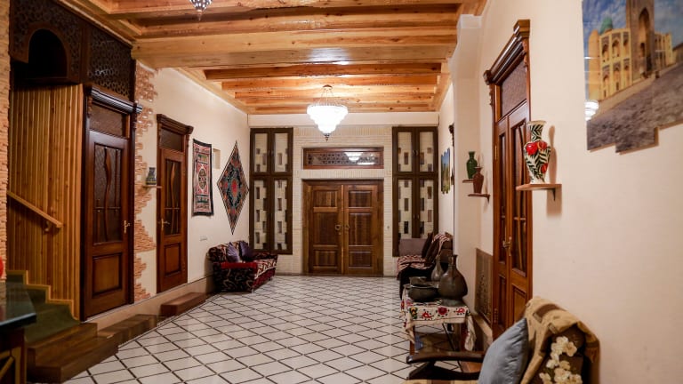 Das Rayhon Hotel liegt im Herzen von Bukhara und bietet seinen Gästen einen angenehmen Aufenthalt in einer ruhigen und entspannten Atmosphäre. Das Hotel verfügt über komfortable Zimmer, ein Restaurant mit hervorragendem Essen und eine freundliche und hilfsbereite Rezeption. Genießen Sie den schönen Ausblick von der Terrasse und profitieren Sie von Annehmlichkeiten wie kostenlosem WLAN und einem Concierge-Service. Das Hotel ist der ideale Ausgangspunkt, um die Sehenswürdigkeiten von Bukhara zu erkunden.