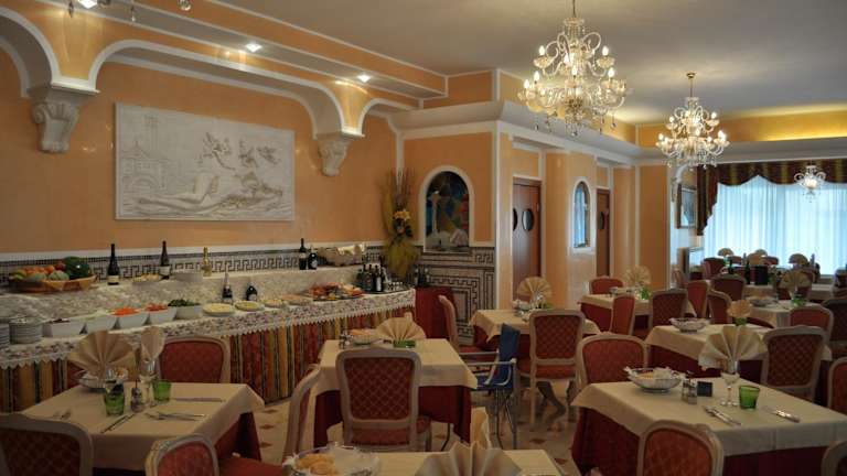 Im hauseigenen Restaurant des Hotels können Sie köstliche Gerichte aus der Region genießen. Das Restaurant bietet eine große Auswahl an Speisen, die frisch zubereitet und mit hochwertigen Zutaten serviert werden. Morgens wird ein typisch italienisches Frühstück serviert, um den Tag gut zu beginnen.