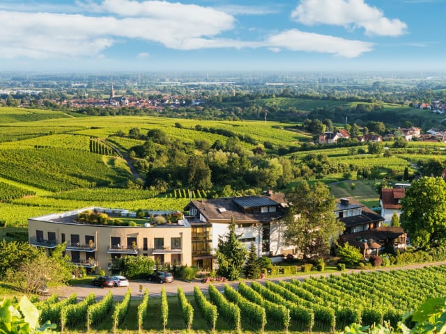 Sie wohnen inmitten von Weinbergen in einem charmanten Landhotel mit gemütlichen Zimmern und herrlichem Blick auf das Rheintal. Genießen Sie die Ruhe und profitieren Sie gleichzeitig von der schnellen Verkehrsanbindung. In nur wenigen Minuten sind Sie mit dem PKW auf der A5 und in Baden-Baden. Sie schlafen in hellen, klimatisierten und individuell eingerichteten Zimmern und verbringen angenehme Stunden in unserem Restaurant bei klassischen und regionalen Speisen und Weinen. In den Sommermonaten lädt Sie unsere Panoramaterrasse mit einem traumhaften Blick in das Rheintal schon zum Frühstück ein. Unser Wellnessbereich mit 3 Saunen, einem Ruhebereich und einer großzügigen Liegewiese laden zum Relaxen ein. Unser Haus ist zentraler Ausgangspunkt für Ausflüge nach Straßburg, ins Elsass und in den Schwarzwald.
