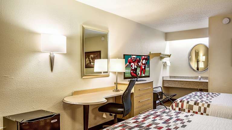 Das Red Roof Inn Detroit - Plymouth/Canton bietet klimatisierte Zimmer mit modernem Komfort. Jedes Zimmer verfügt über einen Flachbild-Kabel-TV und ein eigenes Bad mit einer Badewanne oder Dusche, einem Haartrockner und kostenlosen Pflegeprodukten. Ein Schreibtisch, ein Safe und ein Bügeleisen/-brett gehören ebenfalls zur Ausstattung der Zimmer.