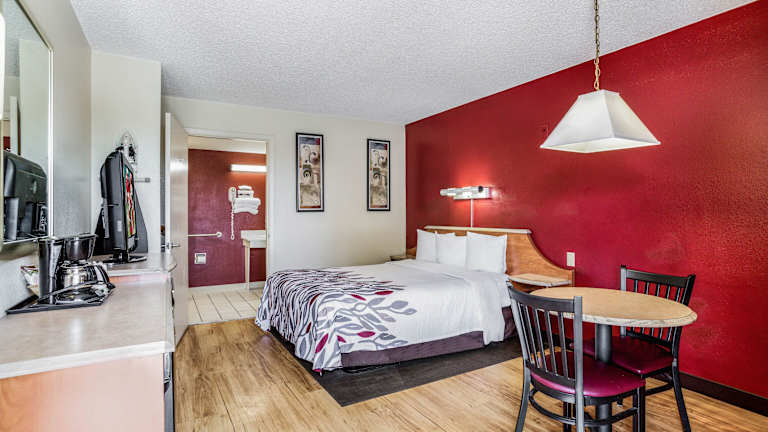 Das Red Roof Inn Gallup verfügt über insgesamt 104 Nichtraucherzimmer, die sich auf zwei Etagen erstrecken und über einen Aufzug erreichbar sind. Die Zimmer sind komfortabel eingerichtet und mit Annehmlichkeiten wie Klimaanlage, Heizung, Mikrowelle, Kaffee-/Teezubereiter, Fernseher und kostenfreiem WLAN ausgestattet. Im Badezimmer finden Sie entweder eine Badewanne oder eine Dusche sowie einen Haartrockner. Rollstuhlgerechte Zimmer mit barrierefreiem Badezimmer sind ebenfalls verfügbar.