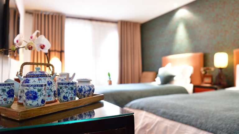 Das Jingshan Garden Hotel ist eine kulturelle Oase der Ruhe im Herzen von Peking. Es bietet eine einzigartige Mischung aus chinesischer Kunst, Kultur und Tradition. Die Lage des Hotels ist ideal, da es sich in der Nähe des Jingshan Parks und vieler weiterer Sehenswürdigkeiten befindet. Die Zimmer sind modern und komfortabel eingerichtet und bieten alle Annehmlichkeiten, die man für einen angenehmen Aufenthalt benötigt. Das Hotel verfügt auch über Tagungsräume und ein Restaurant, in dem traditionelle chinesische Gerichte serviert werden. Ein Highlight ist der atemberaubende Ausblick auf die Tempel des Jingshan Parks.