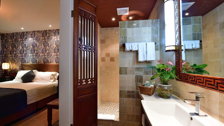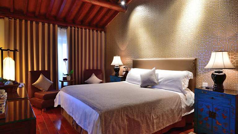 Die Zimmer im Jingshan Garden Hotel sind modern und traditionell gestaltet und bieten luxuriöse Betten und Daunendecken. Jedes Zimmer verfügt über einen großen Flachbild-LCD-TV, eine Minibar, Klimaanlage, einen Safe, kostenfreies WLAN, einen Schreibtisch sowie Tee- und Kaffeezubehör. Die Badezimmer sind mit einer Regendusche, luxuriösen Pflegeprodukten, Bademänteln und Hausschuhen ausgestattet.