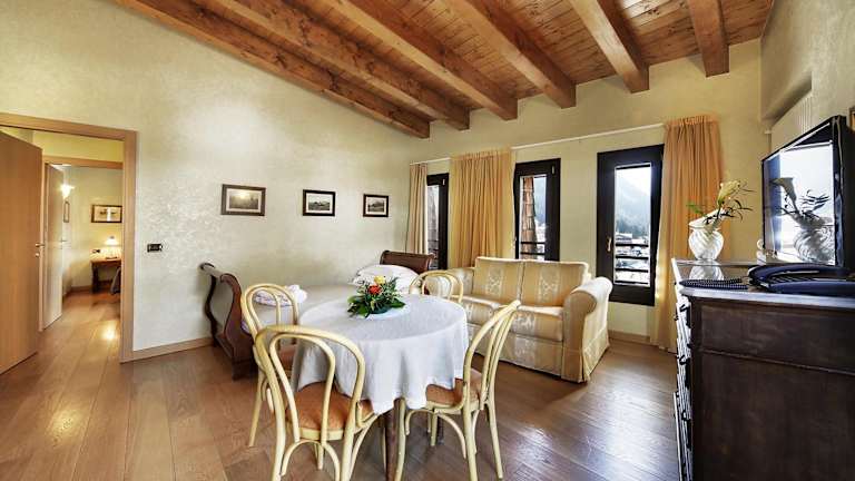 Das Hotel Club Relais Des Alpes liegt im Zentrum von Madonna di Campiglio und bietet eine ideale Lage für Outdoor-Aktivitäten im Adamello Brenta Nationalpark. Die Spinale Skipisten sind nur einen kurzen Spaziergang entfernt und die Talstation der Seilbahn ist in der Nähe. Die Stadt Trento ist mit dem Auto in 75 Minuten erreichbar und die Autobahn A22 ist 60 km entfernt.