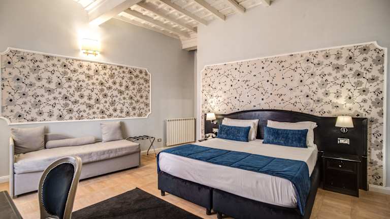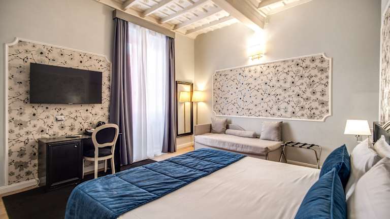 Die Zimmer im Relais Fontana di Trevi sind elegant eingerichtet und bieten Annehmlichkeiten wie einen TV mit Sat-Empfang, Tee- und Kaffeezubereitungsmöglichkeiten und ein eigenes Bad mit Haartrockner. Einige Zimmer verfügen über eine Terrasse, auf der Sie das schöne Wetter genießen können. Das Hotel bietet auch Nichtraucherzimmer.