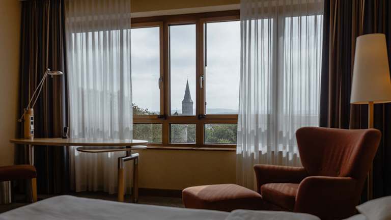 ZUR RUHE KOMMEN 156 Zimmer und Suiten laden zum Wohlfühlen ein. Mit Blick zur Stadt oder dem Garten und der Stadtmauer - hier können Sie sich wohlfühlen. Großzügig und mit viel Tageslicht sind die Zimmer ideal für den nächsten Städtetrip.