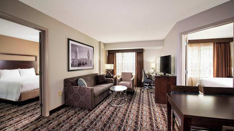 Die 129 Suiten im Residence Inn Worcester bieten den Gästen ein komfortables und geräumiges Zuhause während ihres Aufenthalts. Jede Suite verfügt über eine voll ausgestattete Küche, einen gut beleuchteten Schreibtisch und einen separaten Wohnbereich. Die Zimmer sind modern eingerichtet und verfügen über Sat-TV und kostenfreies WLAN.