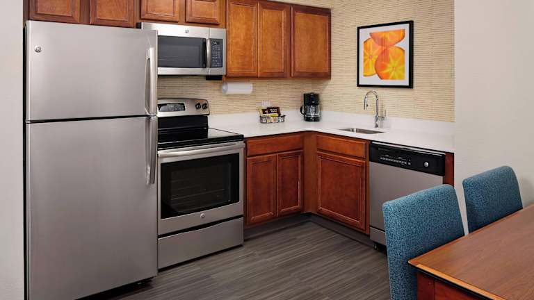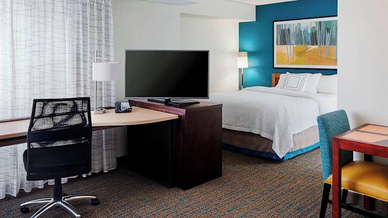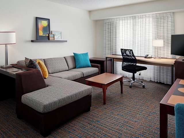 Die Zimmer im Residence Inn by Marriott St Louis Airport sind geräumig und komfortabel. Sie verfügen über eine voll ausgestattete Küche mit großem Kühlschrank/Gefrierfach und Herdplatte, so dass Sie Ihre eigenen Mahlzeiten zubereiten können. Die Zimmer sind mit kostenlosem WLAN und einem 43-Zoll LED-Fernseher mit Kabelempfang ausgestattet. Zur weiteren Ausstattung gehören Schreibtische, Mikrowellen und Telefone für kostenlose Ortsgespräche.