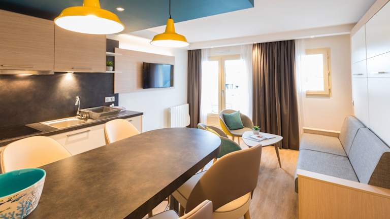 Die Residence Neptunia bietet gut ausgestattete Apartments mit funktionalem Design. Jedes Studio verfügt über ein eigenes Bad und einen TV. Die Gäste haben Zugang zum beheizten Salzwasserpool, der Sauna und dem Hamam in den Thermes Marins.